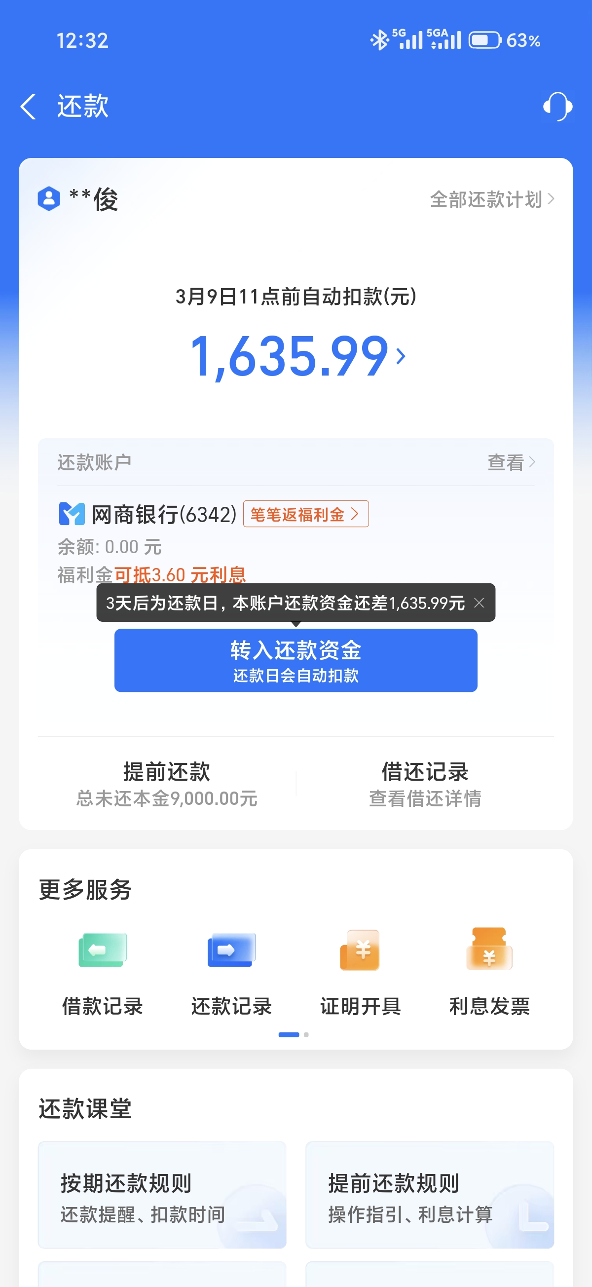 到余额